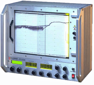 The 320M Marine Echosounder was developed to meet demanding requirements of eld work. Its low maintenance modular construction, together with advanced features and easy conguration, make the 320M the most exible sounder available. Using either the high or low frequency channel, or both simultaneously, the 320M produces a high resolution record accurately depicting bottom proles and sediment layers with 32 shades of grey. The thermal printer uses easily loaded 21.6cm (8.5”) plastic lm for permanent, high-quality records. The annotated depth grid is printed with reverse shading for clarity. Digitized water depth is shown on two large 4-digit LCD displays, visible in direct sunlight and backlit for night operation.